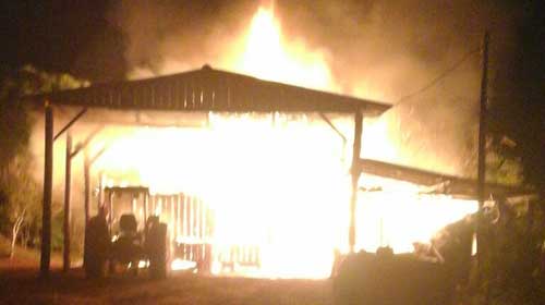 Um incêndio destruiu uma oficina e uma residência na noite deste sábado (16) em Ivaiporã, no Norte do Paraná. O Corpo de Bombeiros foi acionado para combater o fogo por volta das 23h50 no distrito de Alecrim.