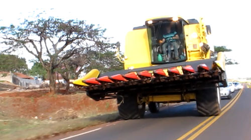 Apesar de o Código Brasileiro de Trânsito (CTB) não proibir o tráfego de colheitadeiras pelo sistema viário, a resolução 210/06 do Conselho Nacional de Trânsito (Contran) determina que as máquinas agrícolas devem ser transportadas na carroceria de caminhões devido ao seu tamanho e peso. A regra também leva em consideração o perigo potencial que os maquinários representam quando em deslocamento.